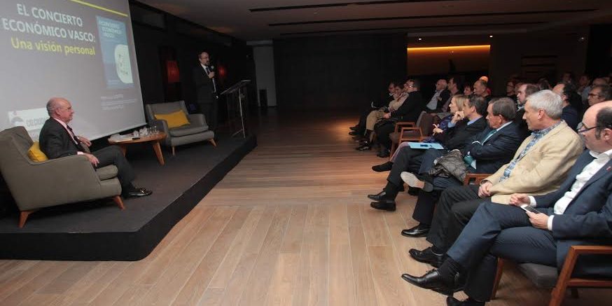 Pedro Luis Uriarte, quien fuera Consejero de Economía y Hacienda del primer Gobierno Vasco de 1980 a 1984, presentará “El Concierto Económico vasco: una visión personal”, un extensa obra en la que lleva trabajando desde hace dos años. El acto fue presentado por Sixto Jiménez.